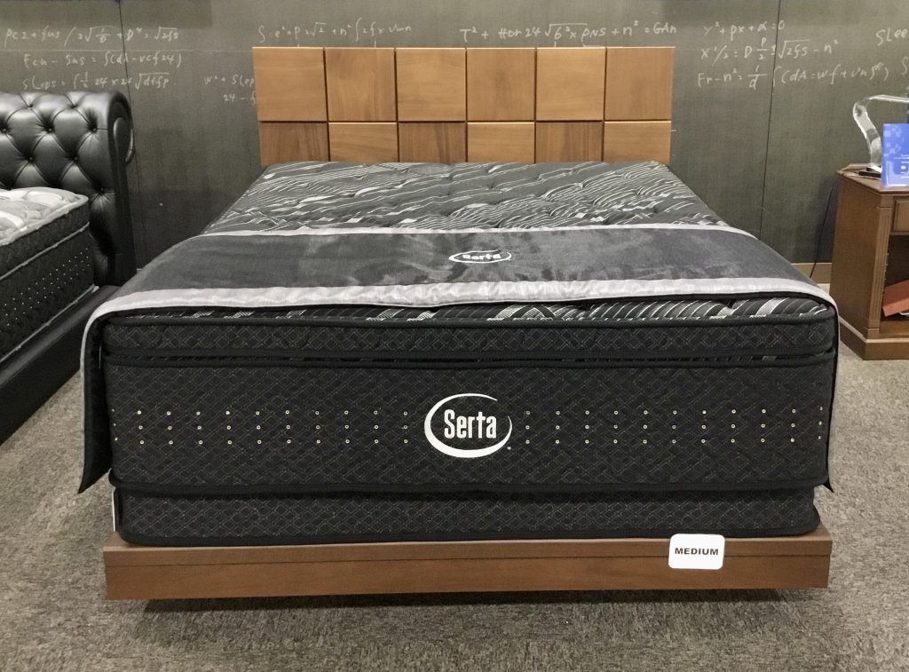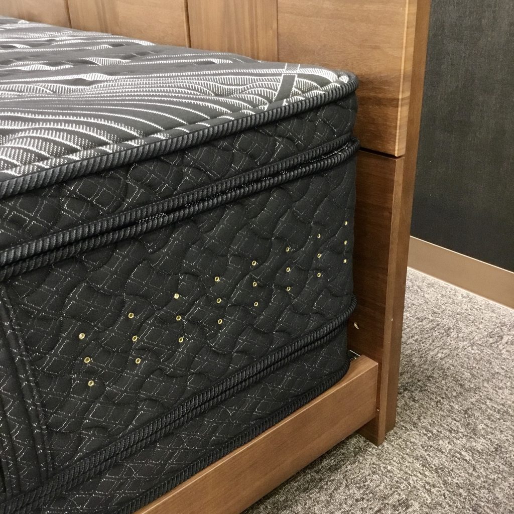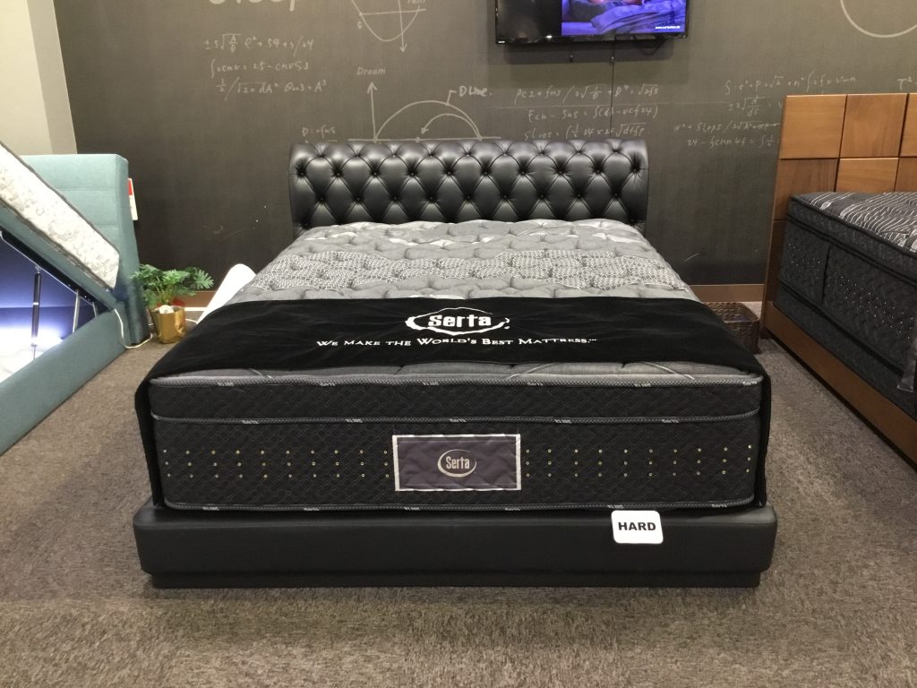 サータのプレミアムシリーズの最新モデルのマットレスを搭載したワイドダブル(Q1)ベッド。