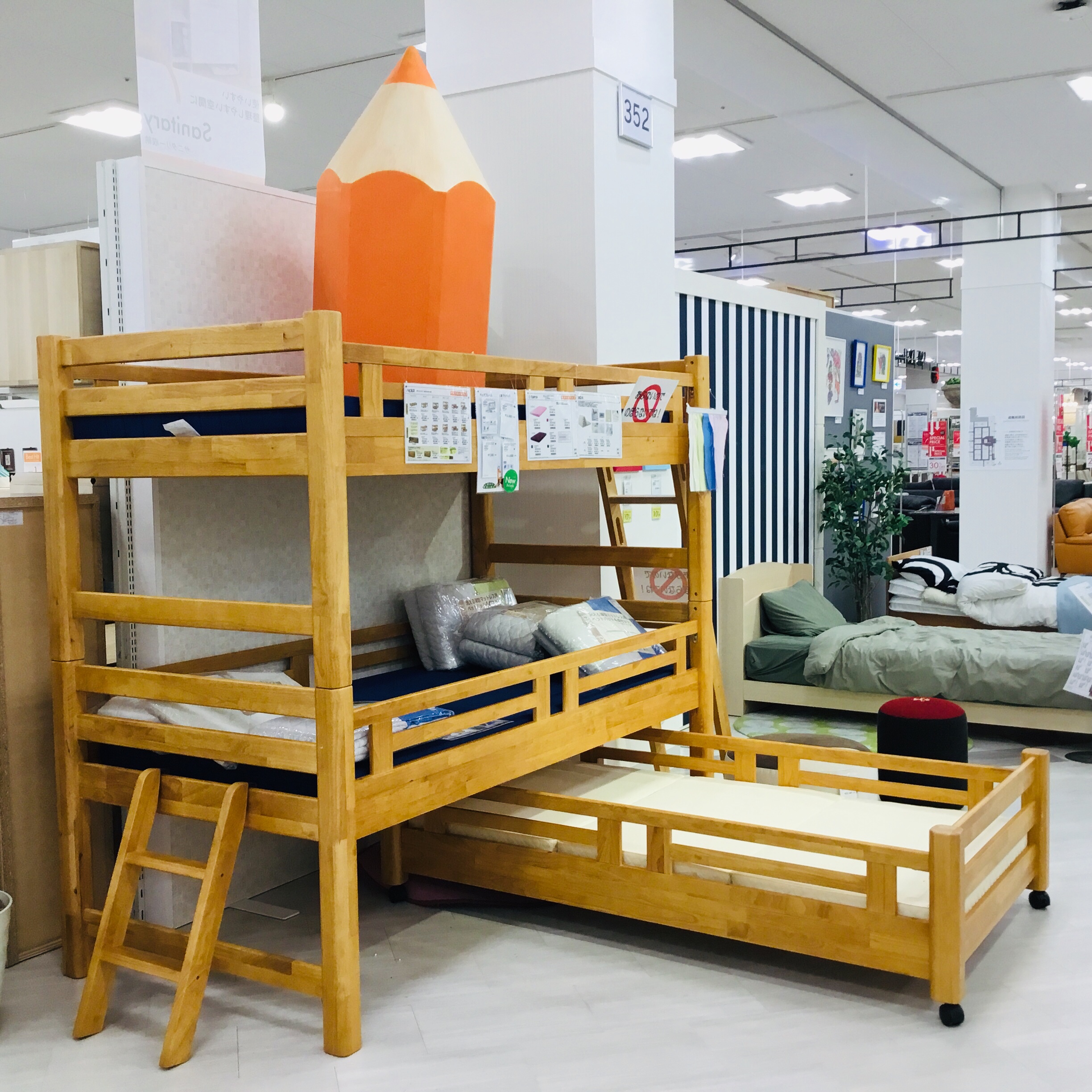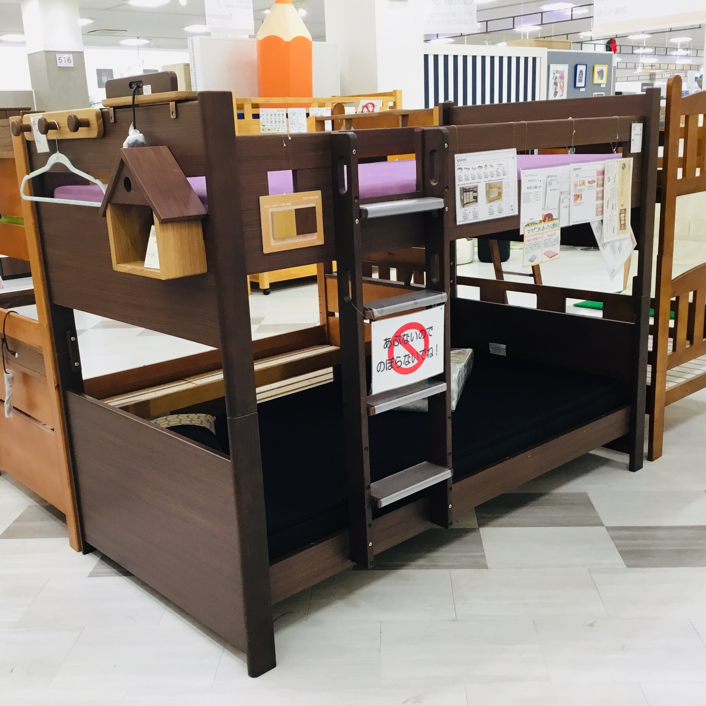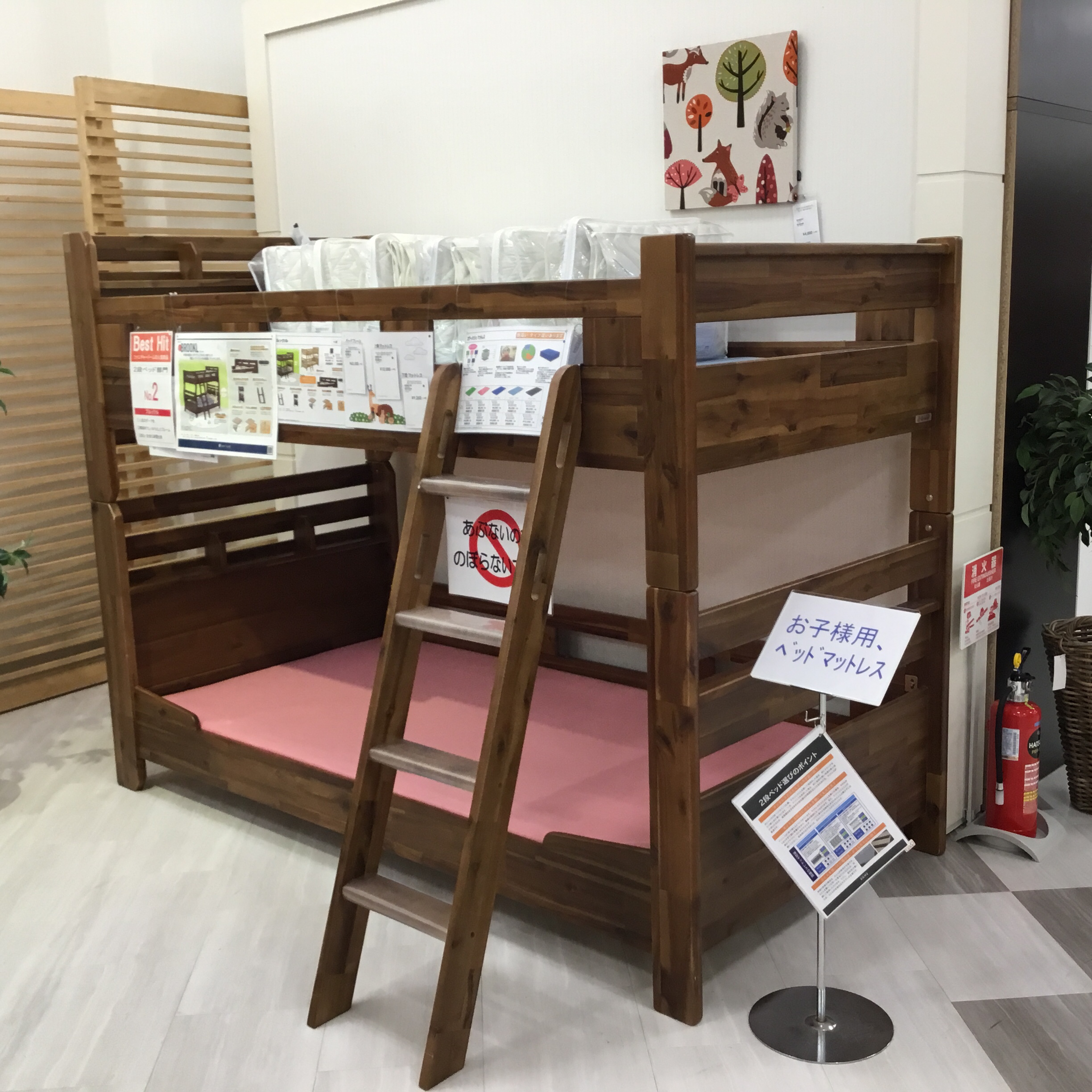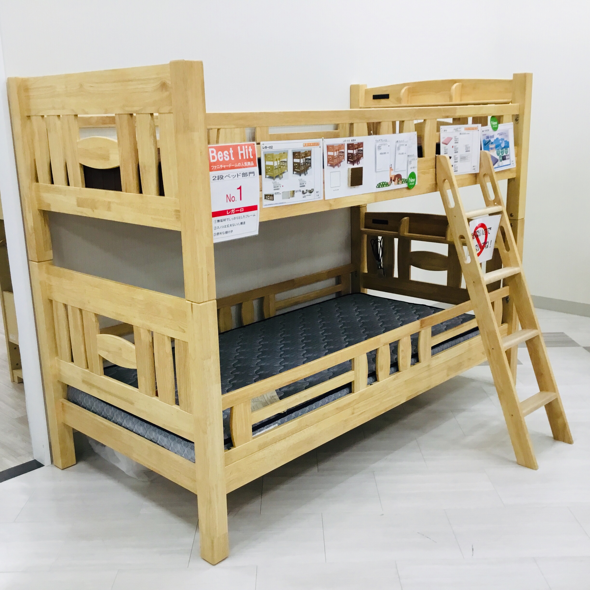店頭では、2段ベッドが10台と、3段ベッドを1台 ご用意しています。