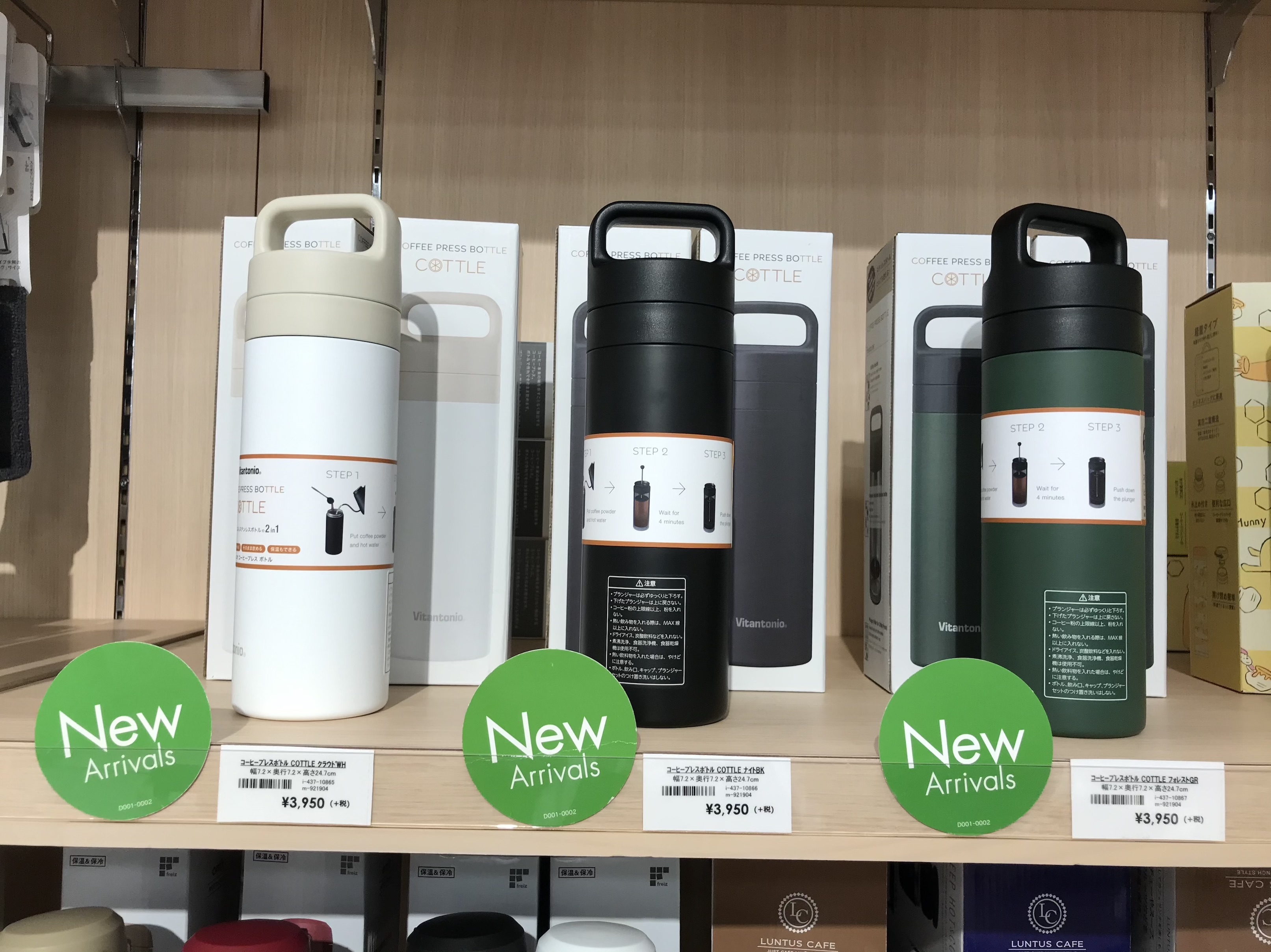コーヒープレスボトル各色 3,950円(税抜)