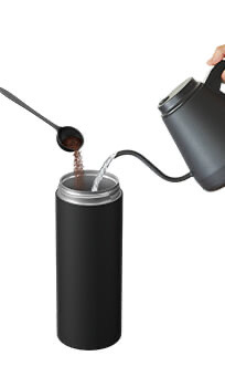 ステンレスボトルとコーヒープレスがひとつになっており、