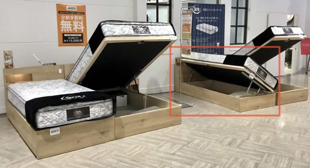 もちろん、常設のベッド売場にもご用意がございますのでご覧下さいませ。
