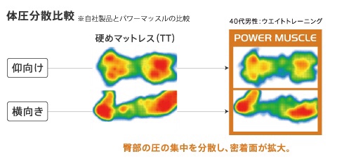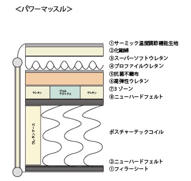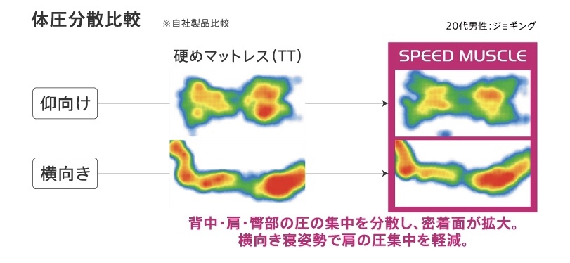 『マッスル』シリーズは『パワーマッスル』と『スピードマッスル』の2種類で、体型に応じた最適な体圧の分散力で、マットレス全体であなたの身体を包み込みます。