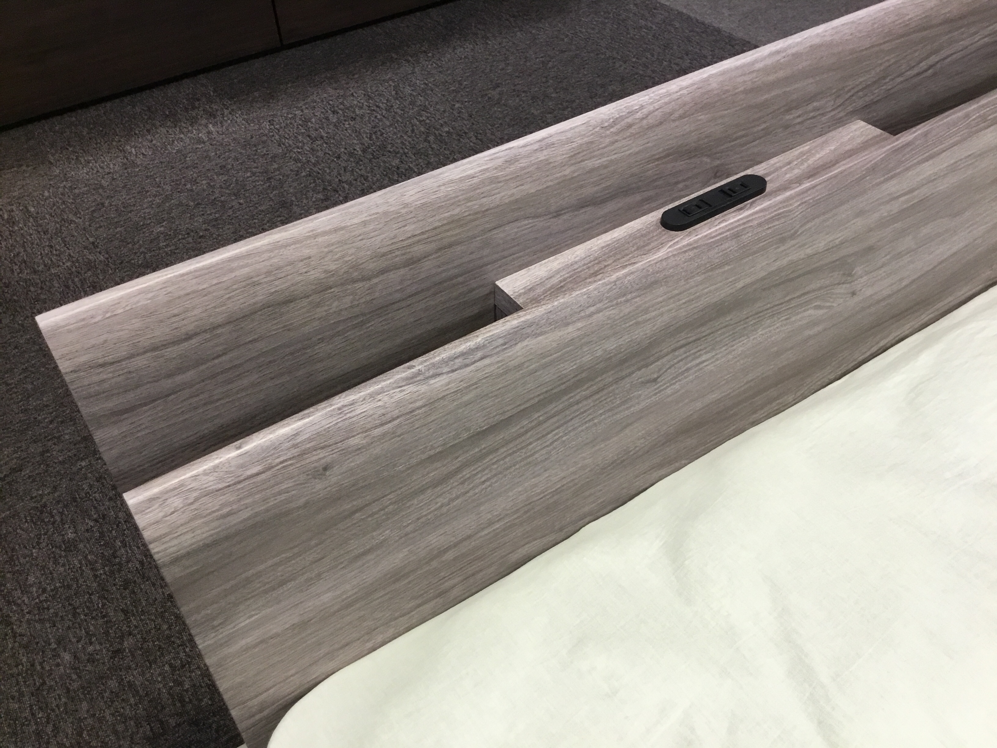 上の画像のようなヘッドボードがキャビネット(棚付き)タイプ。