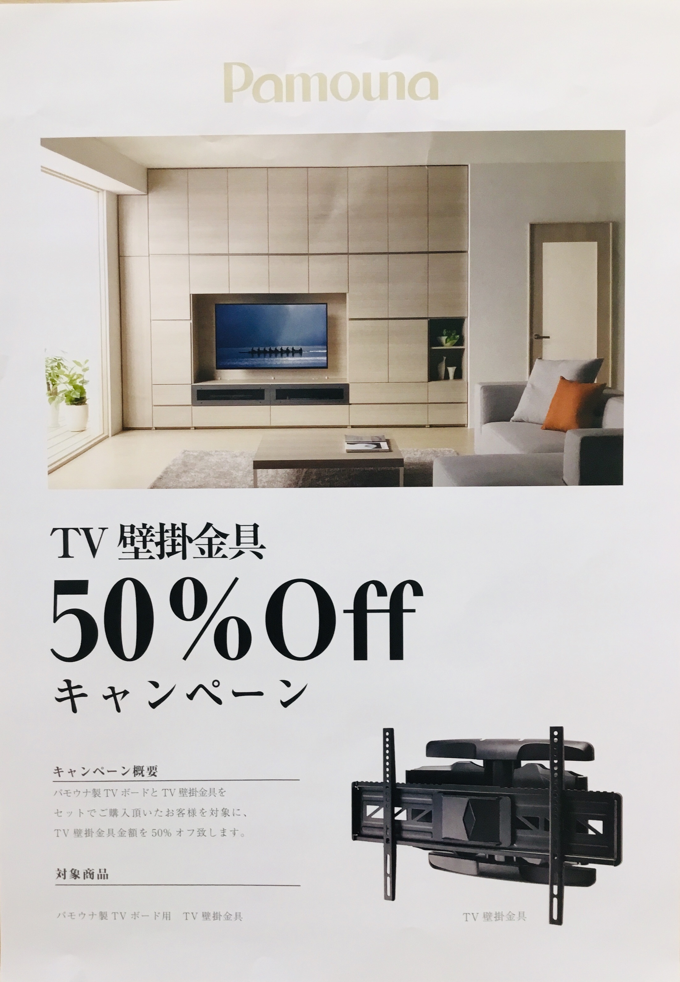 テレビボードは、パモウナ製のテレビボードとTV壁掛金具をセットで同時にご購入いただいた方を対象に、