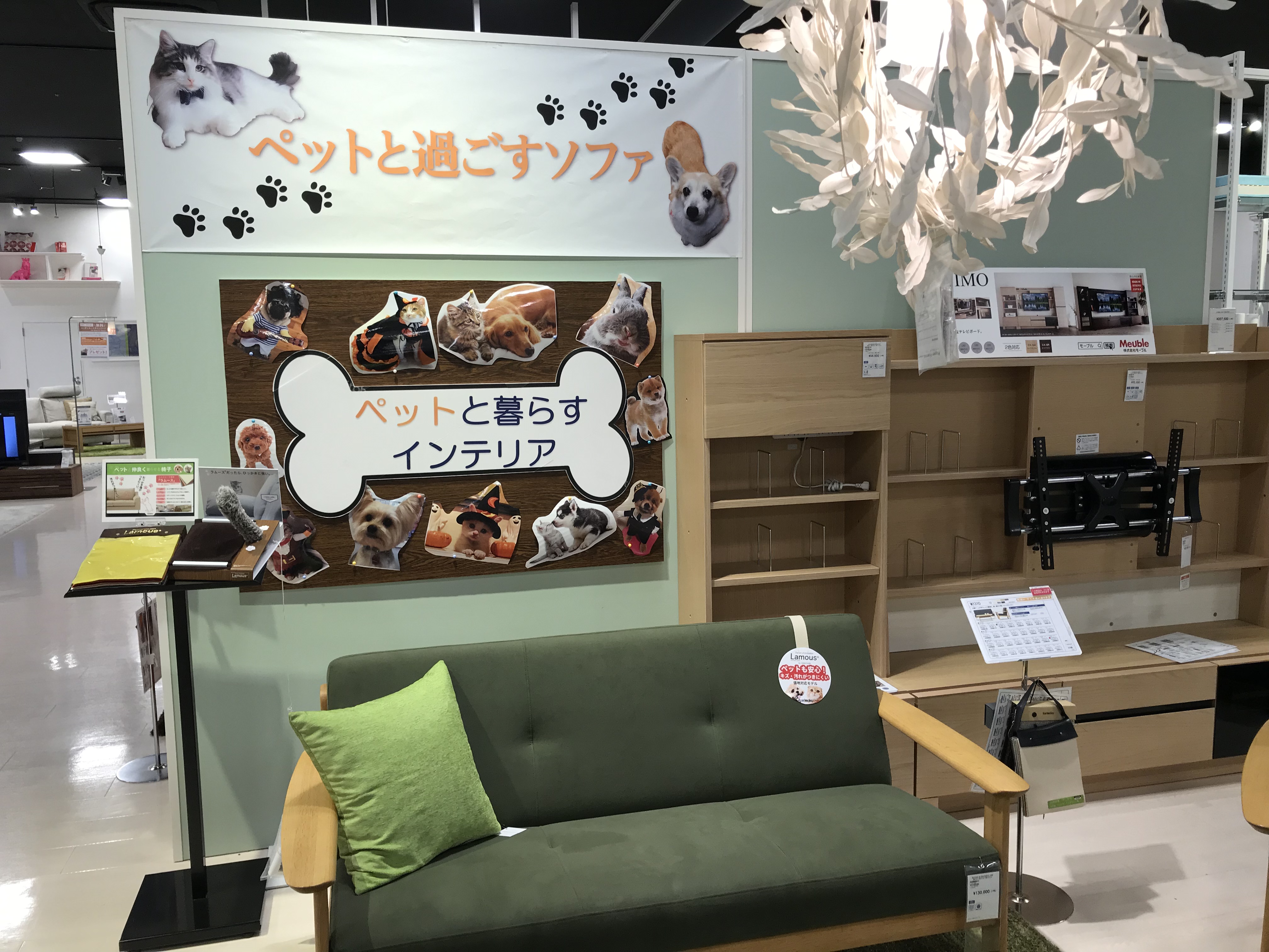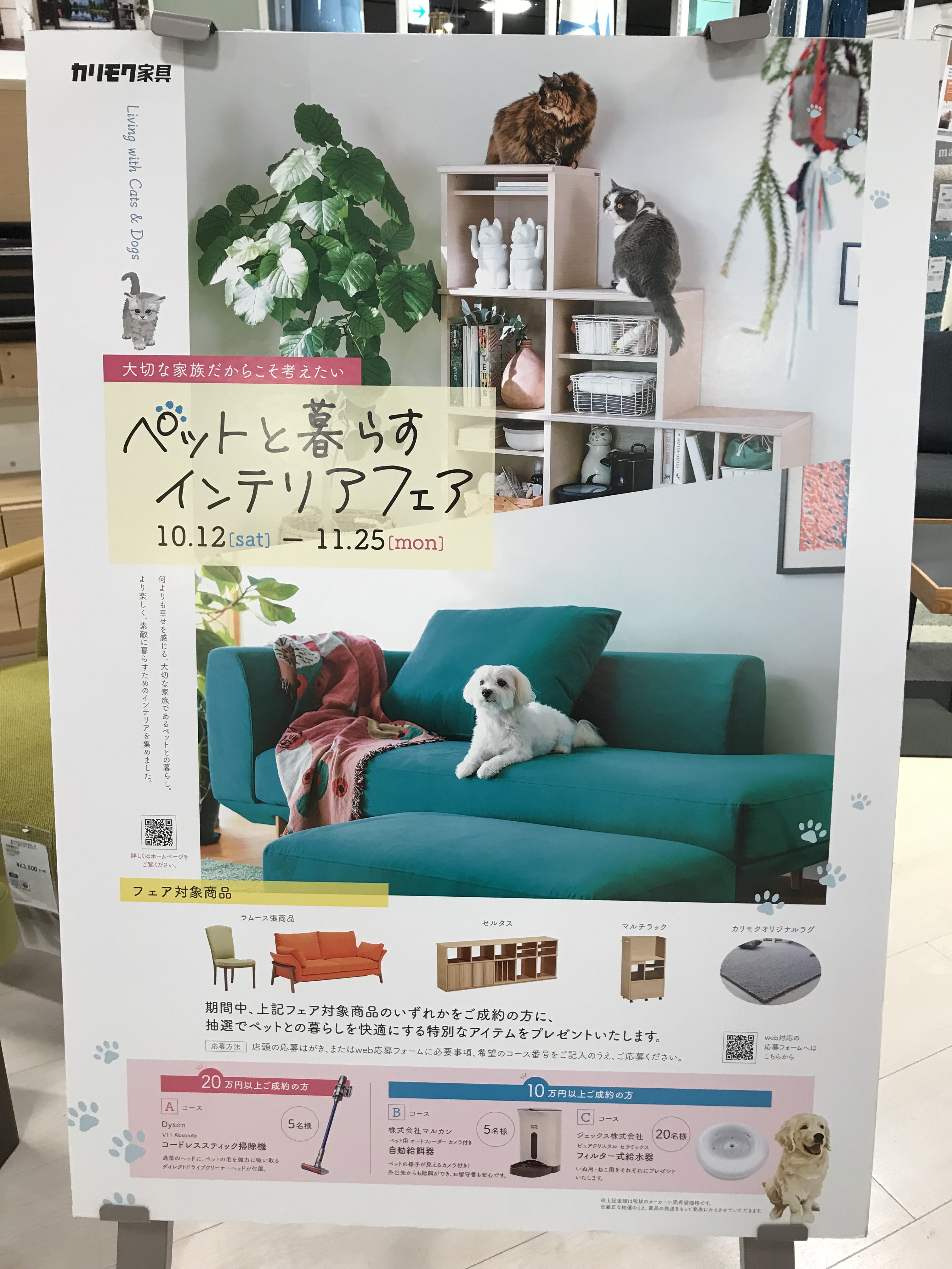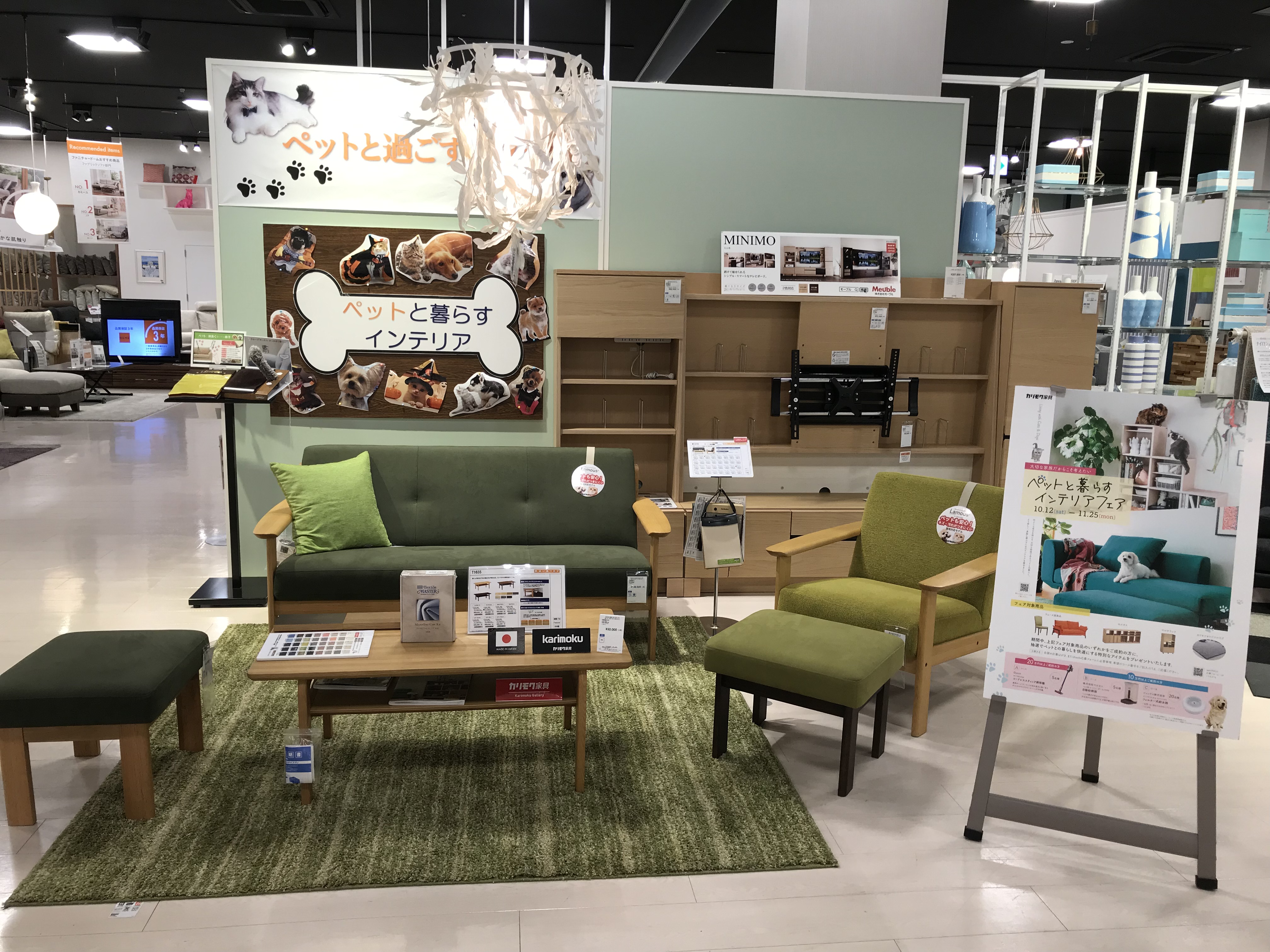 現在、2階リビングコーナーで行われているカリモク家具のフェアをお知らせいたします。