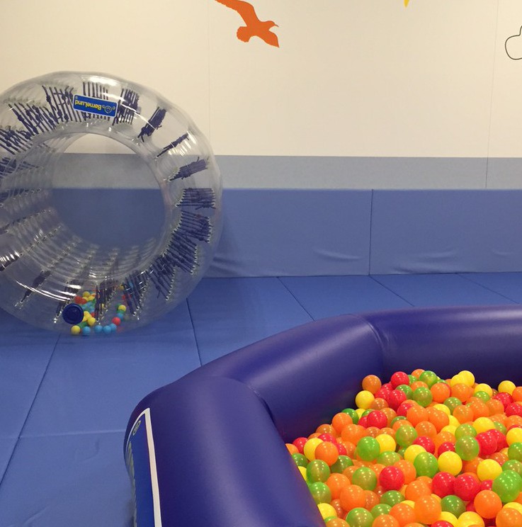 浮き輪みたいな大きなものは「サイバーホィール」右下は「ボールプール」(販売はしていません)