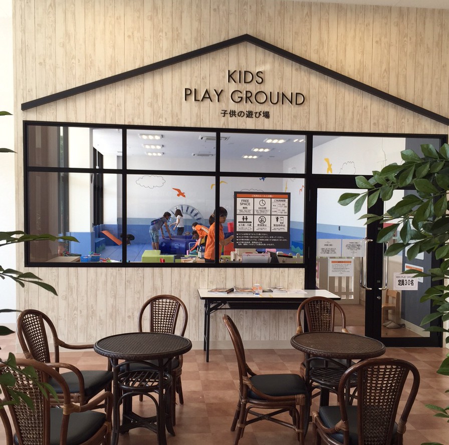 (「キッズ プレイ グランド」は、パパやママにゆっくりお買物を楽しんでいただけるよう一時お子様をお預りする託児所です。)