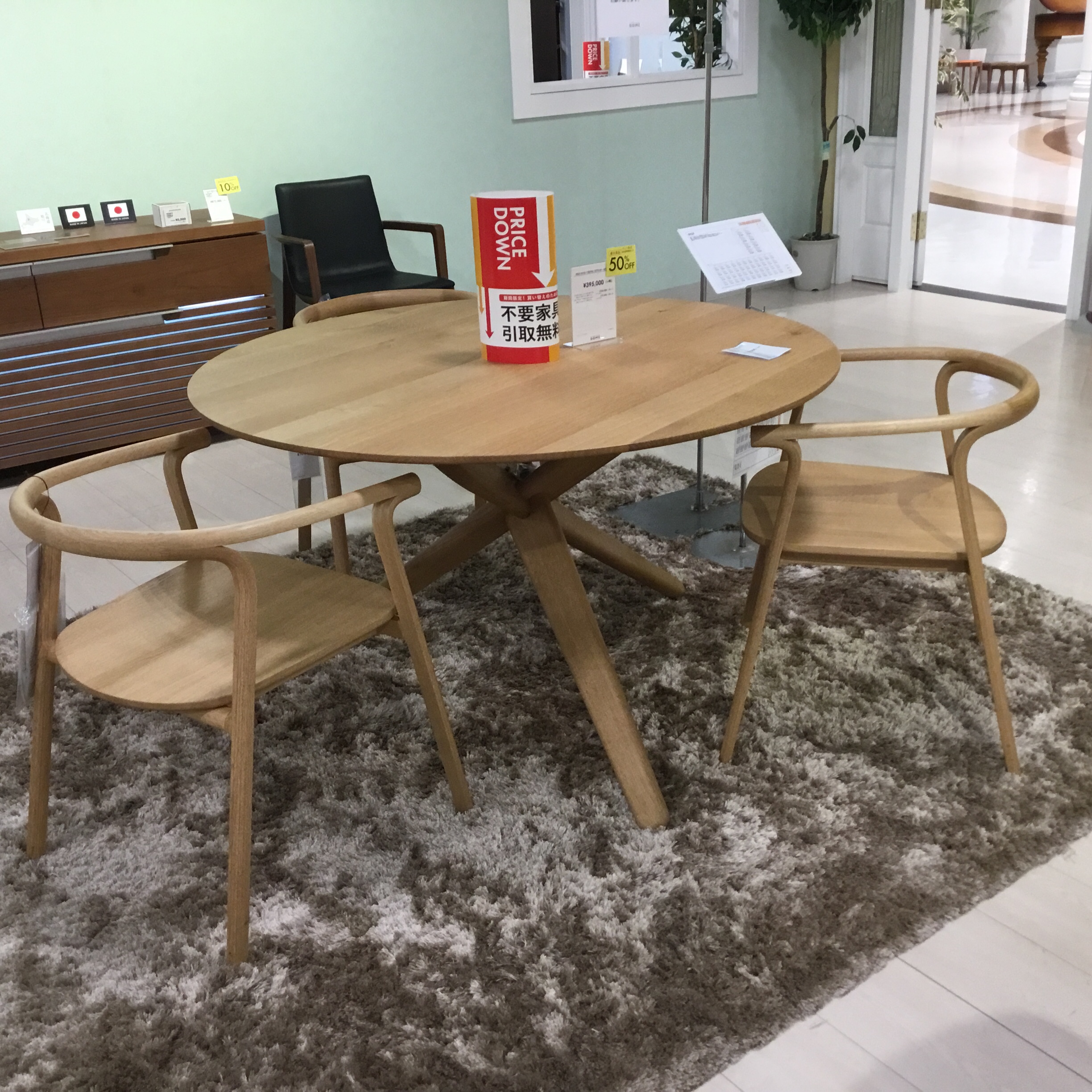 ↓円形天板にクロスした脚がおしゃれなテーブルとチェア3脚のダイニング4点セット