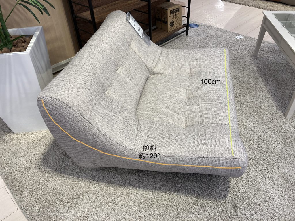 背もたれの傾斜は120度のゆったりと包み込まれ