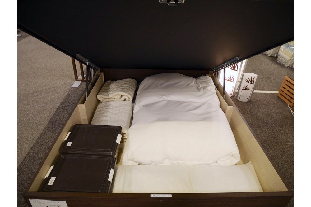 跳ね上げベッドは、「ベッド+収納家具」としての機能も兼ね備えています。