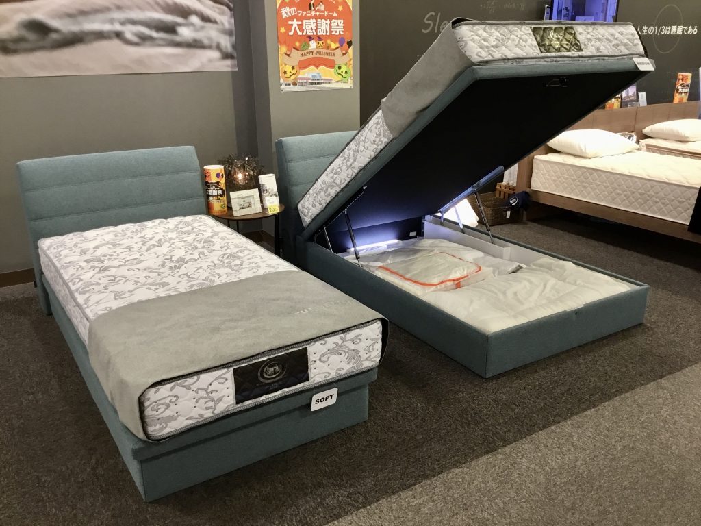 「跳ね上げ収納ベッドキャンペーン」としてはマットレスの同時購入が条件となりますが、もちろん、フレームのみでのお買い求め頂けます。