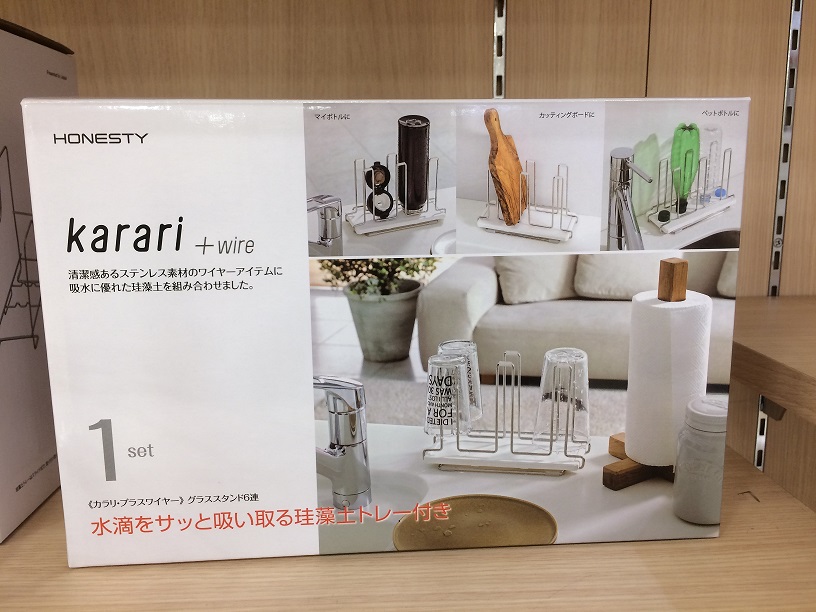 吸水に優れた珪藻土と汚れに強いステンレスワイヤーの組み合わせたシンプルな「karari(カラリ)」シリーズの新商品ご紹介。