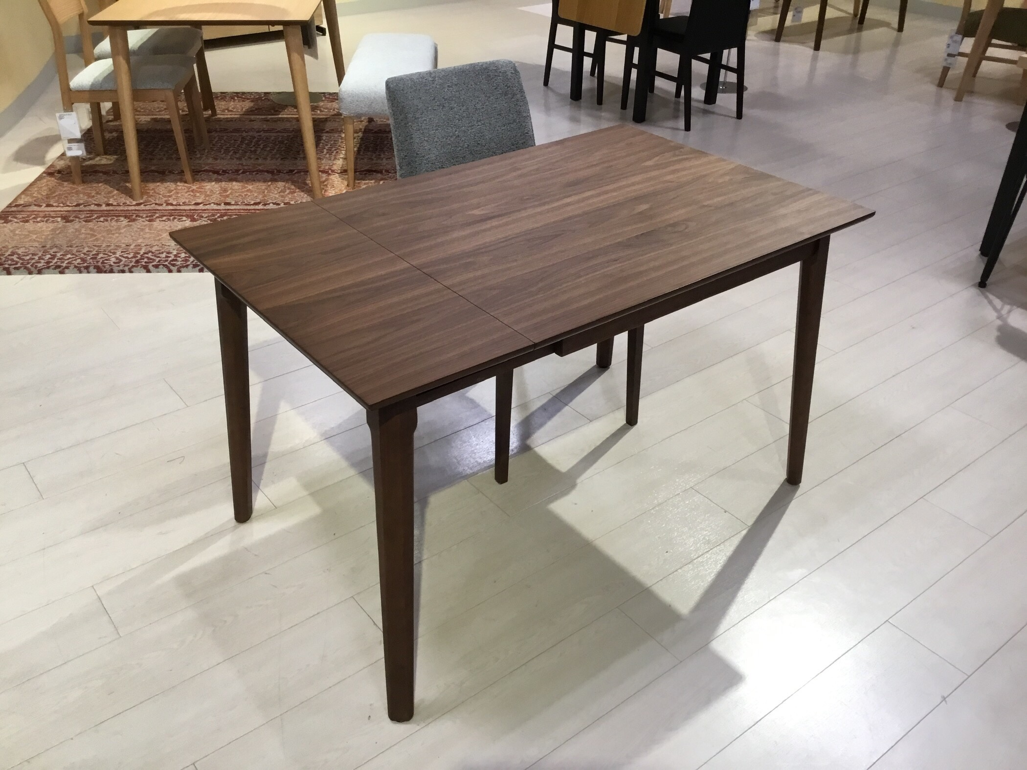 今日は、2人掛けか4人掛けに伸縮できる便利な伸長式ダイニングテーブルのご紹介です。
